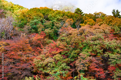 色とりどりに紅葉した木々が生い茂る山