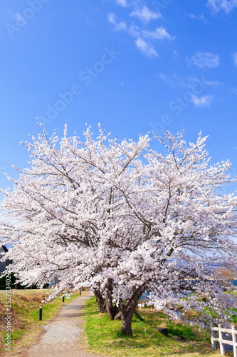 河口湖畔の桜、山梨県富士河口湖町河口湖にて