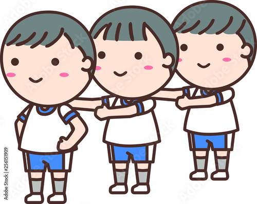 前ならえをする体操着の男の子