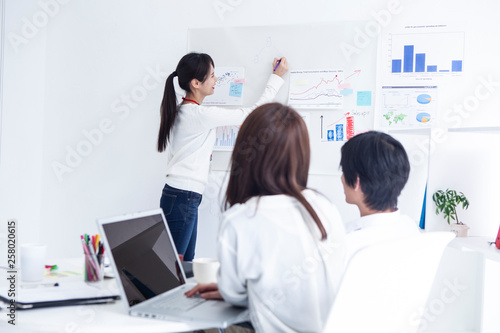 グラフに文字を書き込む女性マネージャー