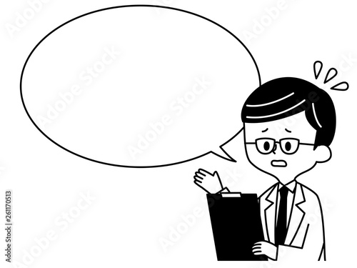医者-男性-吹き出し-注意・忠告・心配-白黒