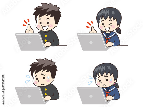 ノートパソコンを使う中高生の男女