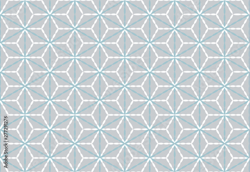 刺し子風パターン 「麻の葉」 グレー地に白と水色の糸