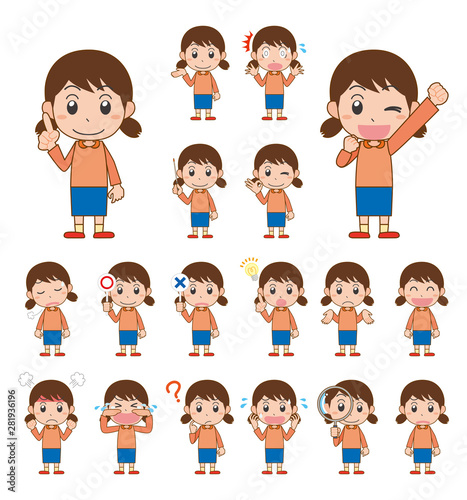 子ども 女の子 表情 感情 セット 主線あり