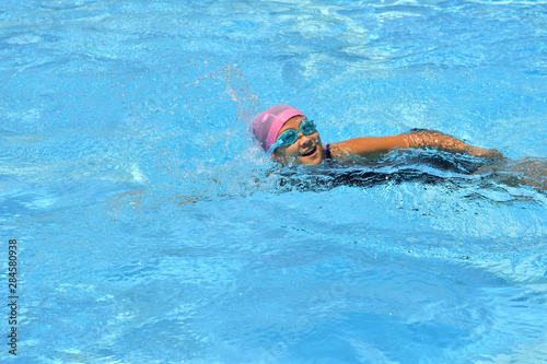 プールで泳ぐ女の子(クロール)