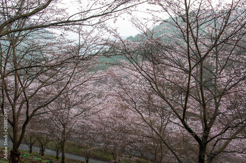 早朝の天理の山に咲く桜