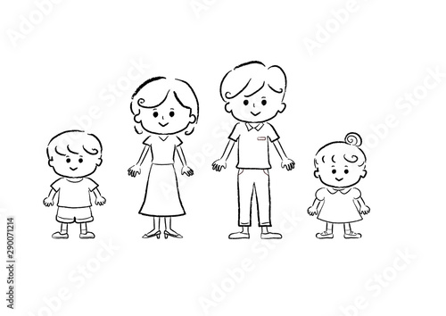 people, live, family, family, smile, smile, smile, happy, lifestyle, chum, young, couple, children, father, mother, father, father, mother, boy, girl, white background, handwriting, cut, illustration, material, illustration, illustration, japanese, front, stood, mother, vector, pretty, sweet, black-and-white, monochrome