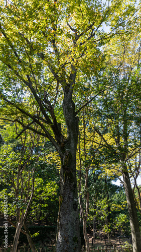 九月の都市公園の樹木