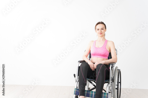 スポーツウェアを着て車椅子に乗る外国人の女性