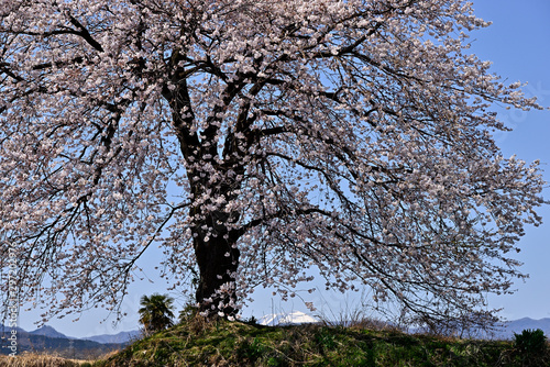 畑の中の一本桜と赤城山