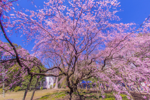 枝垂れ桜と晴天の青空