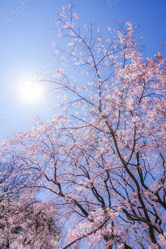 枝垂れ桜と晴天の青空