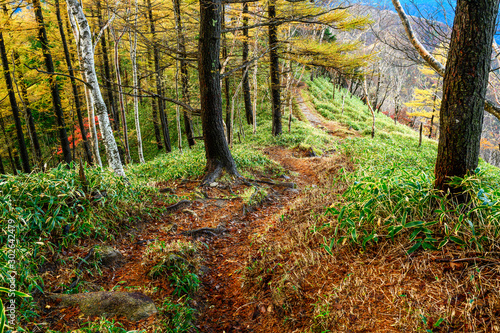 秋の下山道を行く