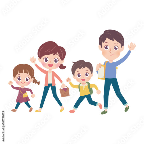 歩く家族 全身 イラスト