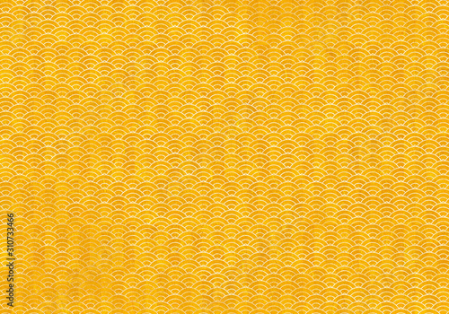 背景:青海波 市松模様 波 海 市松 伝統 和風 和柄 図案 壁紙 テクスチャー 橙 オレンジ 屏風
