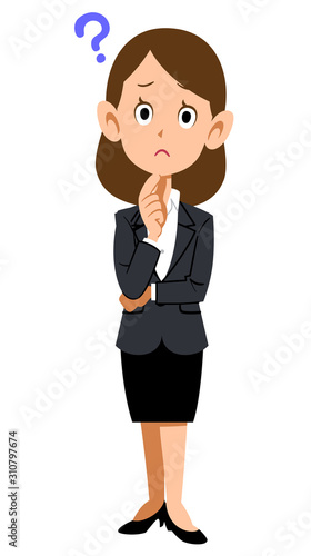 疑問を持つスーツの女性の全身