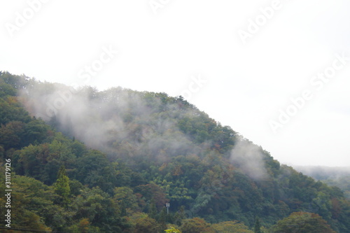 霧に包まれる山の景色