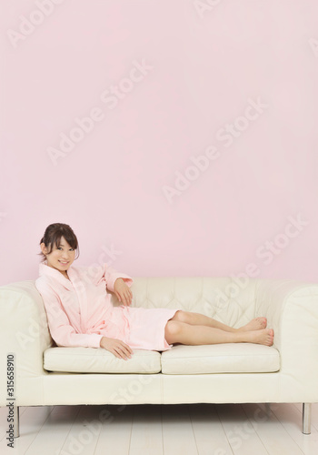 バスローブ姿の若い女性