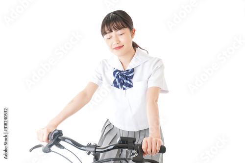 自転車通学をする制服姿の学生