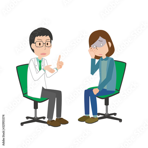 男性医師 説明 問診 診断 主婦 女性 ショック