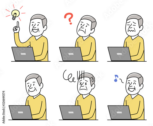 パソコンを使うシニア男性 セット