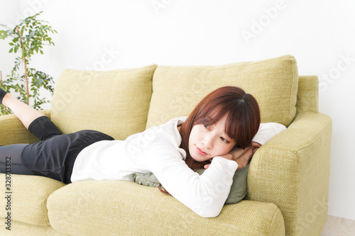 部屋でリラックスをする若い女性