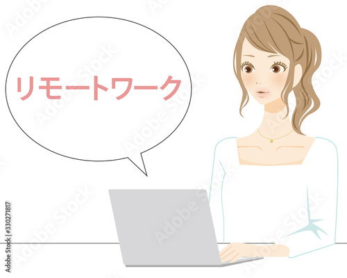 リモートワーク ワークライフバランス 在宅勤務をする女性 働き方 ライフスタイル 笑顔のイラスト