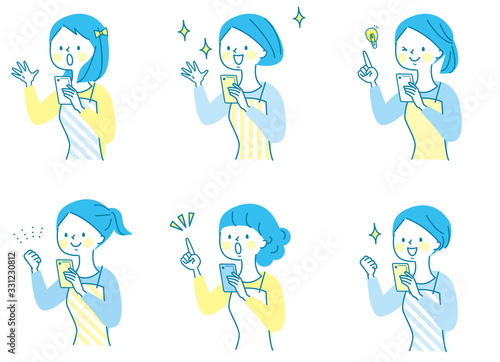 スマホ 驚く 若い女性 エプロン