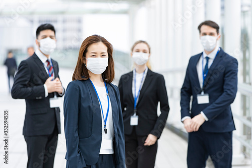 マスクを装着するビジネスマンのチーム