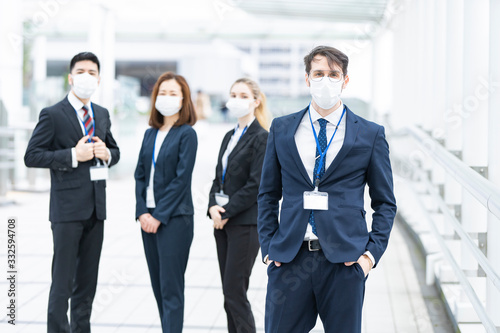 マスクを装着するビジネスマンのチーム