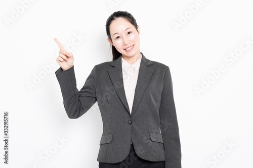 ビジネスのポイントを指し示す女性
