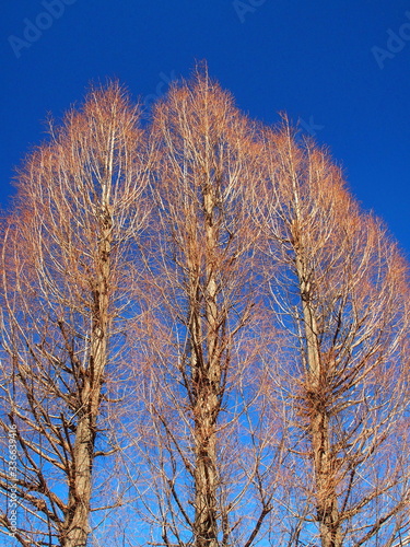 春のメタセコイアと青空