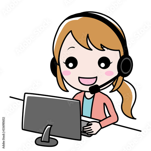 ヘッドフォンとマイクを装着したテレフォンオペレーター