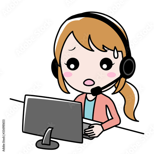 ヘッドフォンとマイクを装着したテレフォンオペレーター
