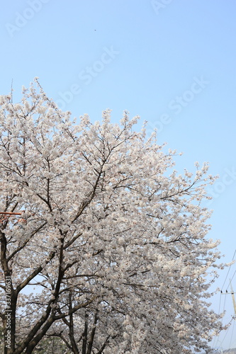 하얀 벚꽃이 보이는 아름다운 봄 풍경