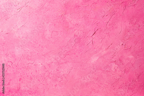 荒々しいタッチの筆跡が残る、ピンク色にペイントされたキャンバスの背景テクスチャー