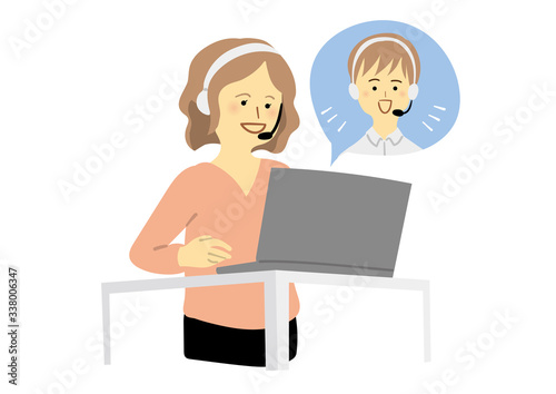 リモートワークで会話をする女性