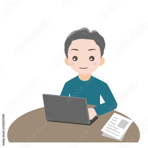 パソコンで作業をする男性