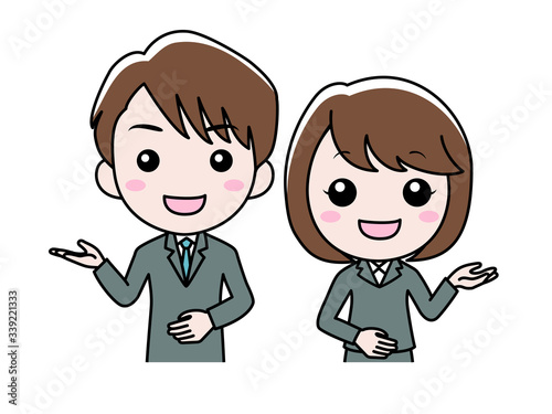 スーツ姿の男女が案内している
