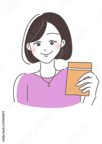 サプリメントを持つ女性