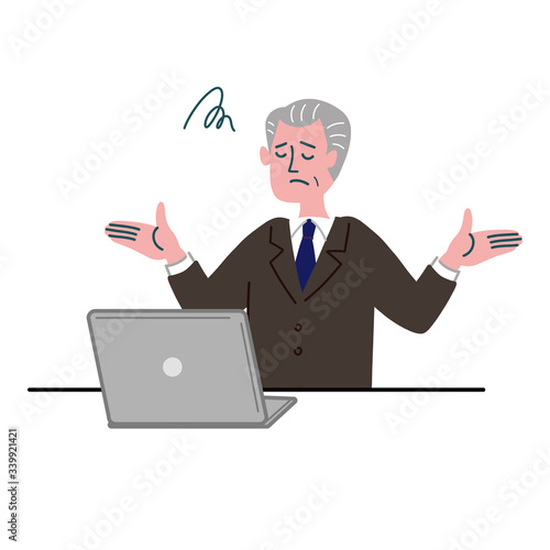 スーツ 男性 シニア パソコン 呆れている
