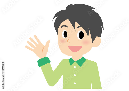 男性の表情 手を振る