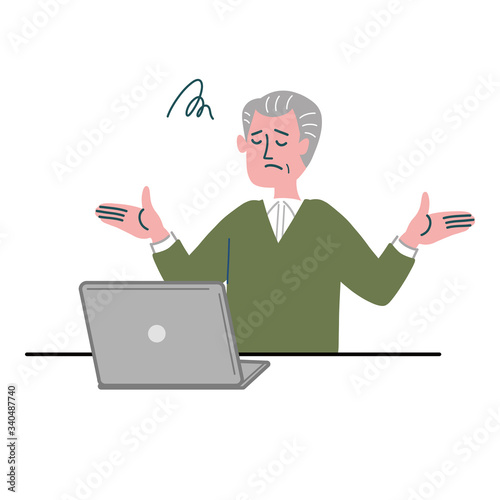 男性 シニア 主夫 パソコン 呆れている