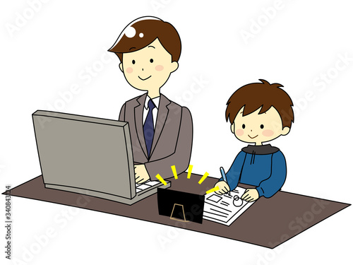 テレワーク中の親、隣で勉強する子供