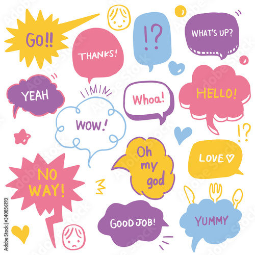カラフルなふきだしのイラストセット 文字入り