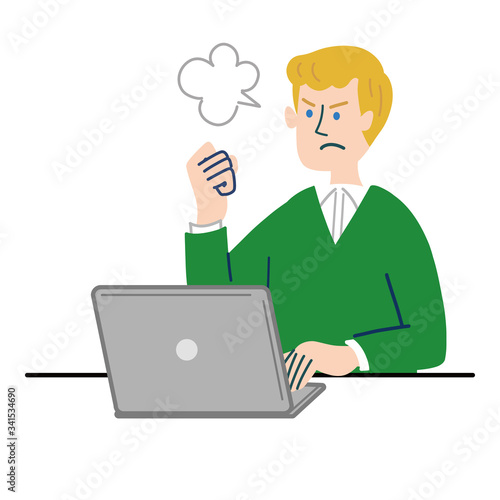 男性 外国人 ブロンド パソコン 怒っている