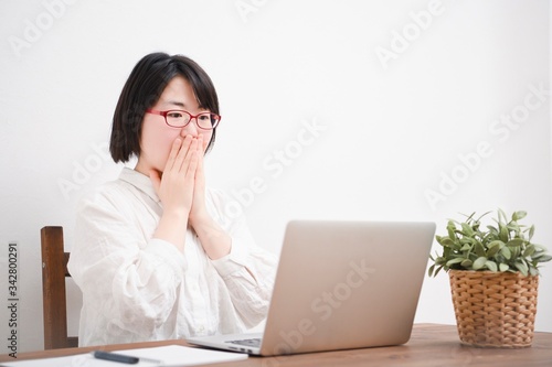 ノートパソコンを使う女性