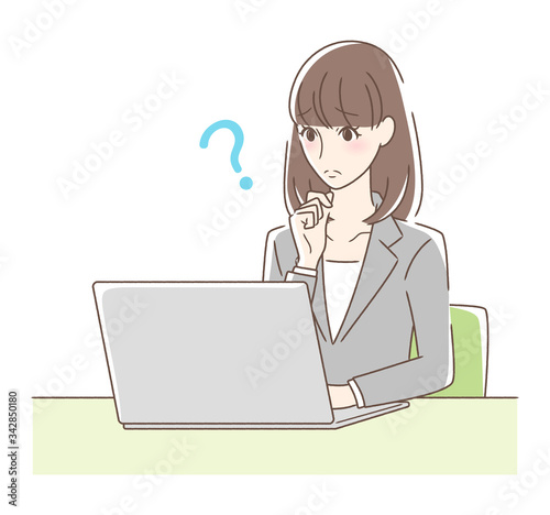パソコンを操作して悩む女性