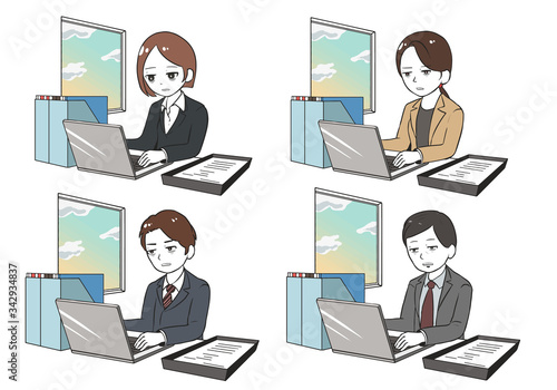 徹夜で働く社員(夜明け)