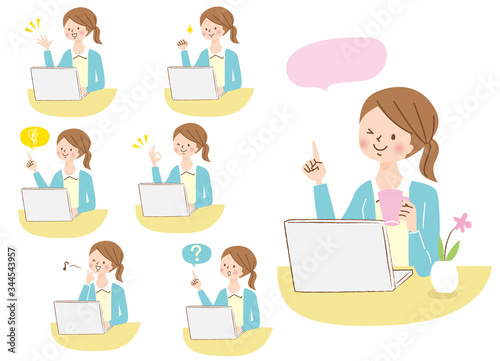 人物 パソコン 若い女性 表情セット